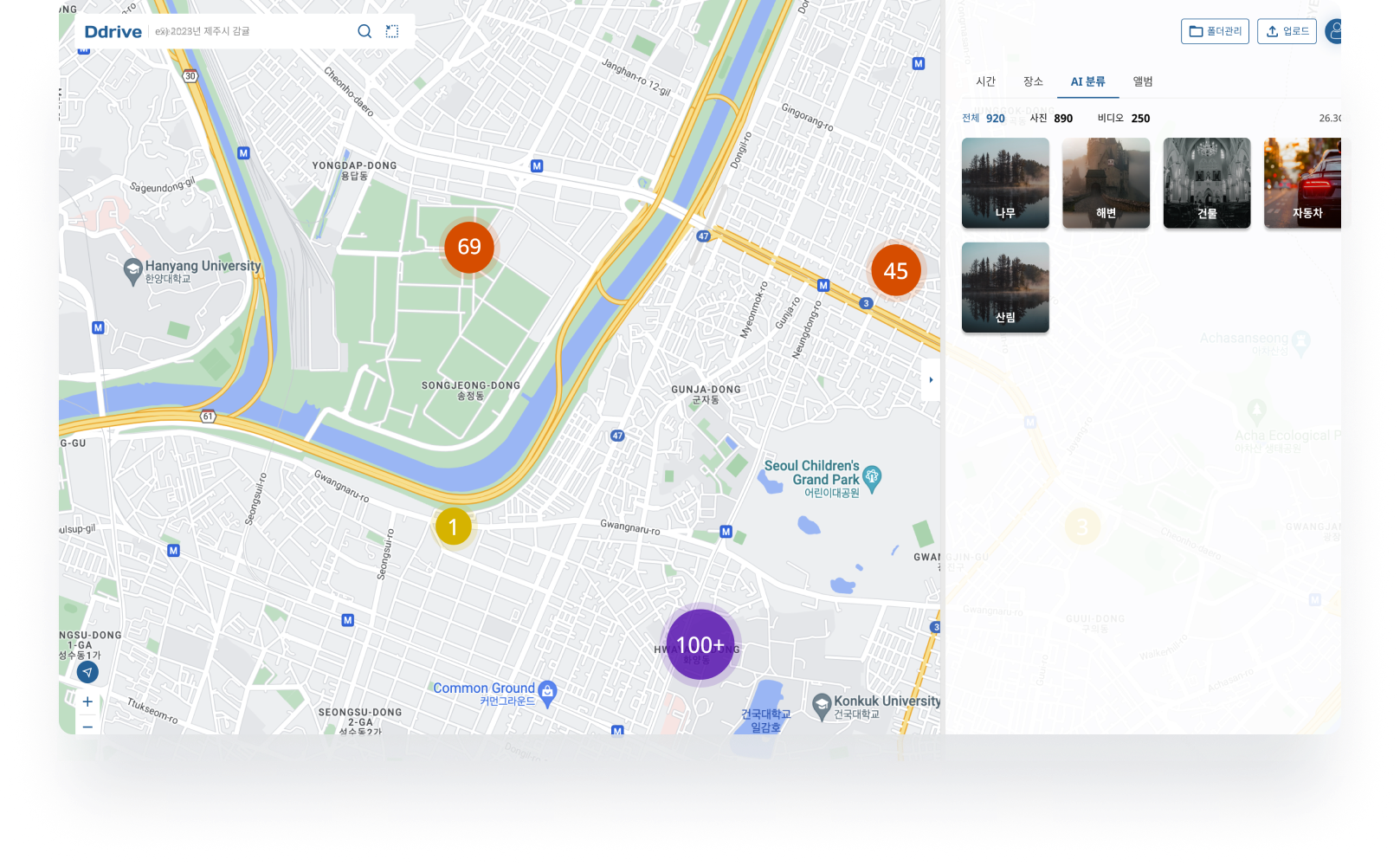 DDriveX는 드론으로 수집한 수많은 영상을 자동으로 분류·검색·관리할 수 있는 시스템으로, 협업과 공유를 위한 플랫폼 기능을 제공하여 영상 데이터의 가치를 극대화합니다.