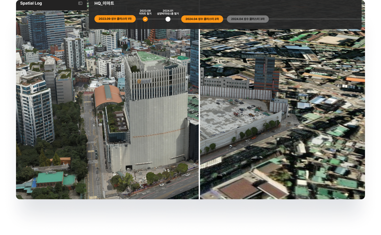 SpatiaLogX는 해상도 영상, 고정밀 3D모델, 실내 공간정보로 정밀하게 기록하고, 스토리텔링을 결합한 디지털 아카이빙을 통해 도시의 기억을 보존하는 솔루션입니다.