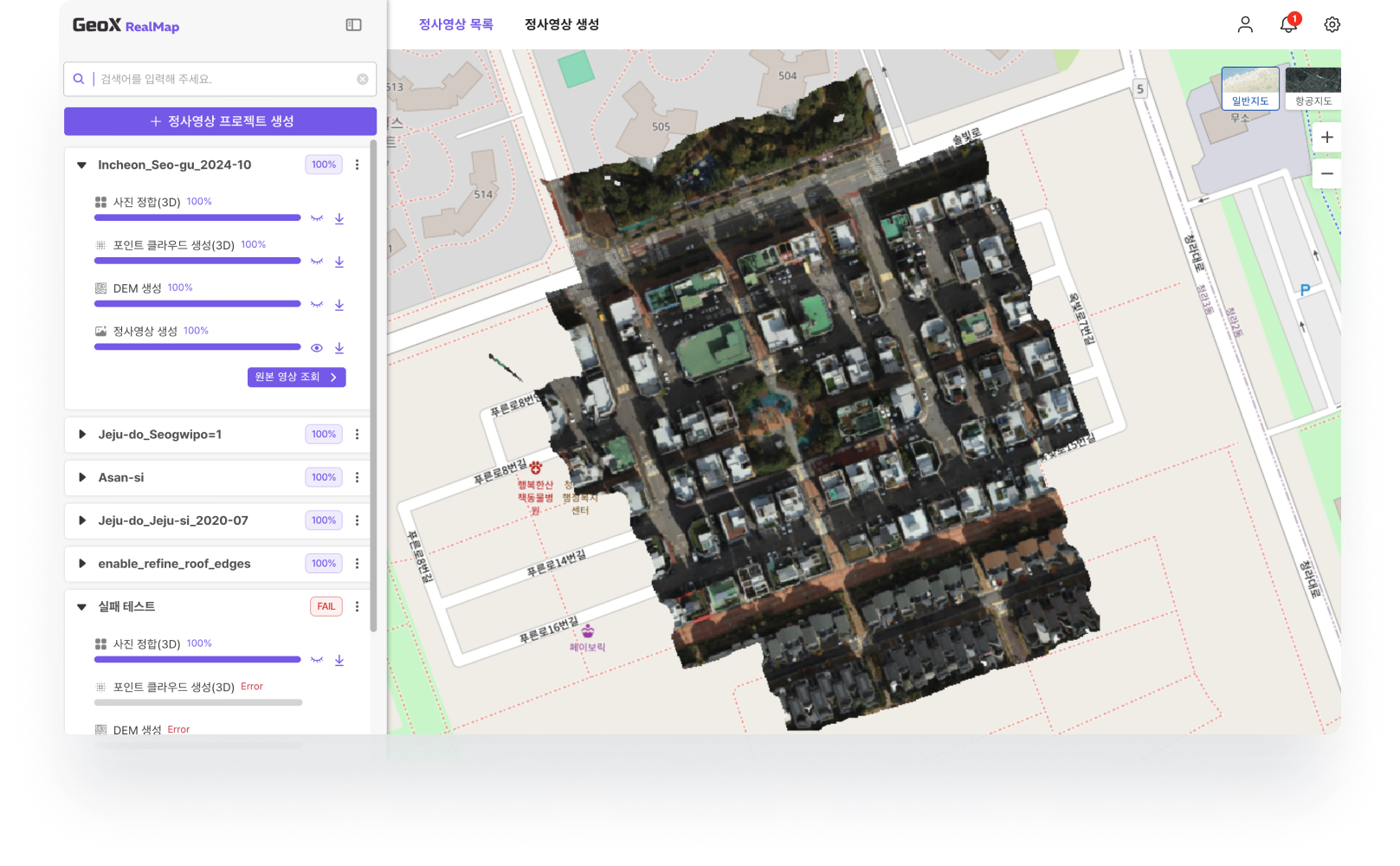 RealMapX는 고정밀 AI 분석 기술을 활용하여 위성·항공·드론 영상으로부터 실감형 정사영상을 자동 생성하고, 공간 데이터를 시각적으로 정밀하게 구현해내는 차세대 지도 제작 솔루션입니다.